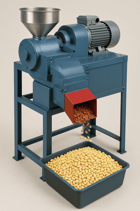 A machine for peeling beans. It peels and separates the hulls from the peeled beans. The machine is multifunctional and can also pound yam, unripe plantain, and more.