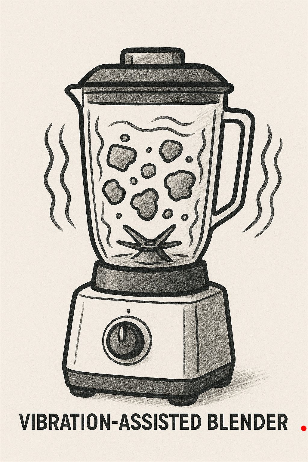 A next-generation blender that integrates gentle, specific-frequency vibration (or sonication) to mobilize ingredients stuck on the container walls, allowing them to fall back toward the blades, delivering uniform, hassle-free blending without manual scraping or spatulas.